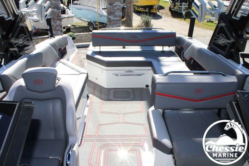 Dash and Instrumentation Accessory Power Plug - 12 Volt (Dual) Black Leather/SS Steering Wheel w/Colored Stitching Composite Helm Eyebrow, Custom Stitching Depth & Water Temp Pkg. Glass Cockpit, Dual Garmin 742 Plus Gloss Black Dash Console Hour Meter(s) Illuminated Switch Panel/Switches Stainless Steel Switches Engine Options EVC w/PTA & Cruise (Volvo) Exterior Windshield, Stainless Steel Anchor Locker Bow Scuff Plate, Stainless Steel Fender Clips w/Line (4) Graphics, Molded-in Gelcoat Midship Cleats Model Designator, LED, Transom Ski Pylon - Stainless Steel Sof-Trac Mat, Swim Platform w/Flip-Down Swim Step SS Tubular Platform Perimeter Rail Stainless Steel Engine Vents Swim Platform w/Flip-Down Swim Step Transhield Shipping Cover Wakeboard Racks, Elite (Alum) Interior Aft Facing Rumble Seat Aft Sunpad Backrest SS Accent Rail Aft Walk-Thru Carpet Bow Walk-Thru Door Carpet, 40 oz., Snap-in w/Neoprene Back Cooler, Removable Hard-Side (36 qt.) Del Mar Helm Capt. Chair Head w/Porta Potti Passenger Seat Flip Backrest System Removable Bow & Cockpit Carpet Seating Varadense Comfort Sundeck Convertible Lounger Trash Receptacle, 3.5 gal Stereo Ipod/USB/MP3 Port Sound System, Bluetooth, w/6 Spkrs. Stereo Remote, Dash Structure, Safety, & Performance 10/5/3 Year Warranty Protection Electrical Bonding System Ballast Tanks (6) Battery Switch, Dual w/ACR Circuit Breaker Protected Elec System Composite Floor Composite Transom Cruise Control-Zero Off Fiberglass Cockpit Liner Fiberglass Stringer System Fire Extinguisher(s), Manual Ignition Safety Switch Kevlar Reinforced Hull Stainless Steel Windshield Braces Through Prop Exhaust Optional Equipment Canvas Bow Tonneau Cover Cockpit Tonneau Cover Mooring Cover Shade Sail, Aft (req. Arch w/Sunshade) Shade Sail, Bow Dash and Instrumentation Glass Cockpit, Dual Garmin 8610 Wireless Phone Charger, w/Holder XM Weather Engine Options Ocean-X (Volvo) Exterior Cobalt Lettering, Satin Black (Exterior) Arch, Alum/Stainless w/Sunshade (Fixed) Arch, Prisma, Elec Folding w/Bimini Arch, Pr