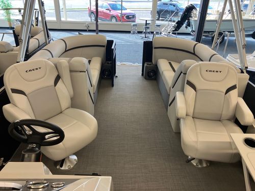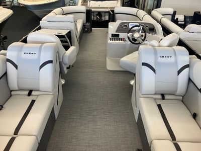 The Crest Marine Classic LX is a versatile and family-friendly pontoon boat that combines comfort and performance. This model is perfect for both fishing enthusiasts and leisurely cruising. The helm features convenient USB phone chargers, and this floor plan offers optimal space for entertaining including dual captain’s chairs, and plenty of bench style seating for ultimate comfort for everyone. The 220 Classic LX is designed to exceed even the highest of expectations!
