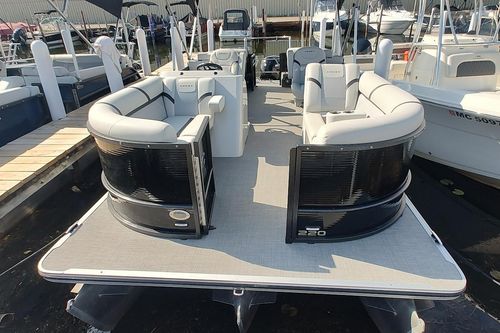 Comfort and performance are at the forefront of features onboard the best-value pontoon in our lineup. Choose the Fish Package to hook huge bass and enjoy the best marine technology at the helm for the captain’s convenience. USB phone chargers are throughout so your whole crew can stay connected and keep the music going. Choose from a multitude of floor plans that offer optimal space with L-shaped sun pads, dual captain’s chairs, and swing back loungers. Fish, swim, eat, lounge, and enjoy every season on the Classic LX.