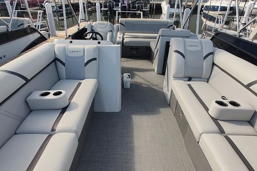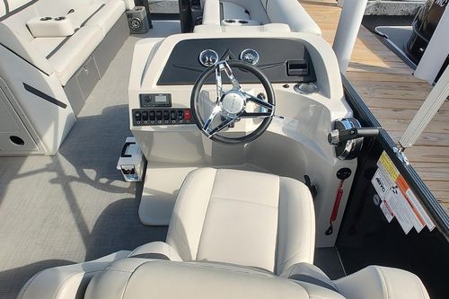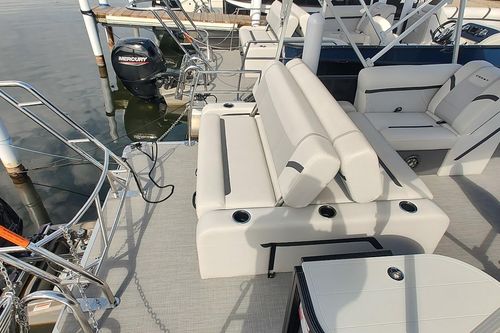 Comfort and performance are at the forefront of features onboard the best-value pontoon in our lineup. Choose the Fish Package to hook huge bass and enjoy the best marine technology at the helm for the captain’s convenience. USB phone chargers are throughout so your whole crew can stay connected and keep the music going. Choose from a multitude of floor plans that offer optimal space with L-shaped sun pads, dual captain’s chairs, and swing back loungers. Fish, swim, eat, lounge, and enjoy every season on the Classic LX.