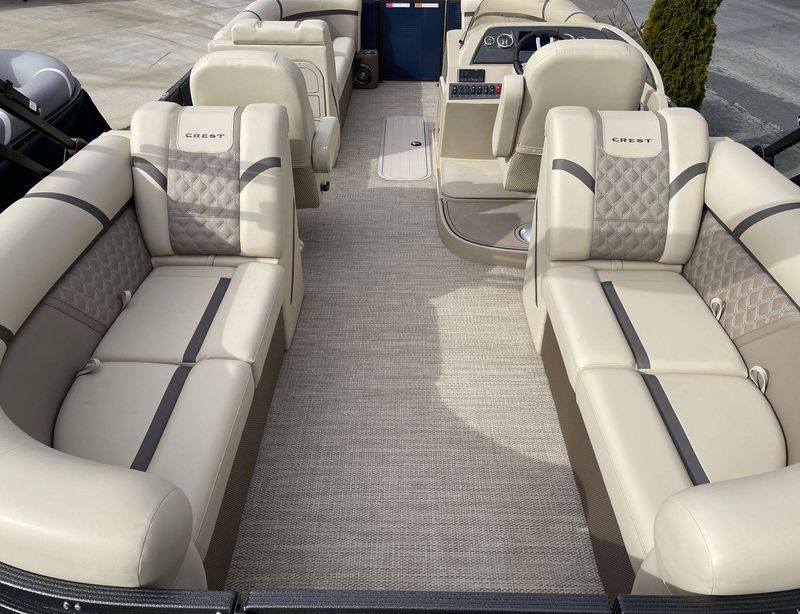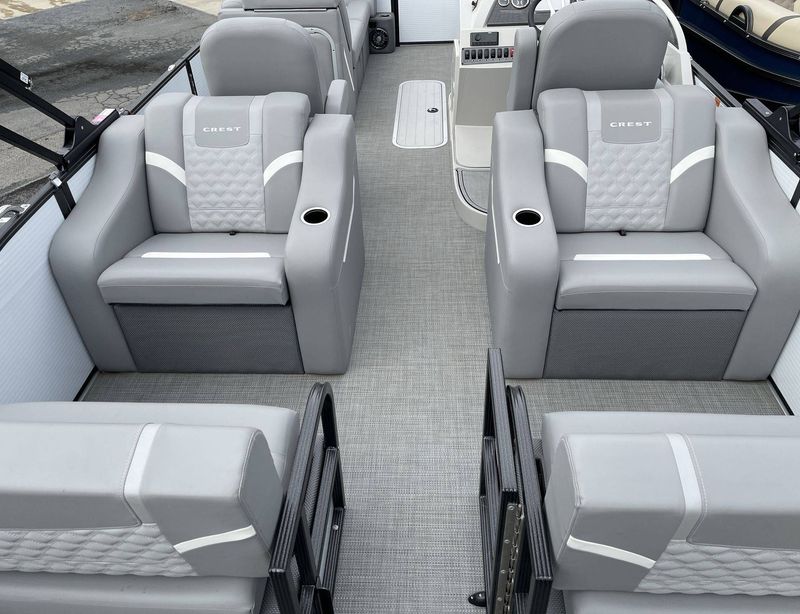 Prioritizing your safety, the 2024 CREST Platinum 240 SLC adheres to the highest safety standards. It's sturdy, ensures smooth sailing, and offers a safe boating environment. The vessel is also built for comfort, equipped with plush upholstery, a well-designed helm, and ample space for lounging and storage.