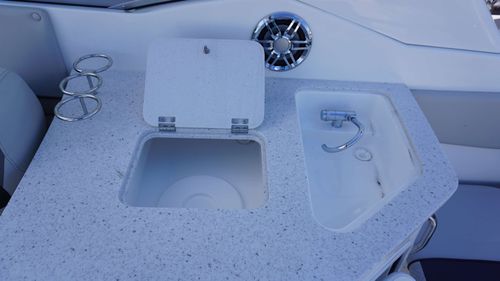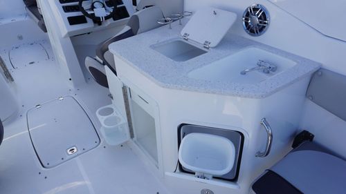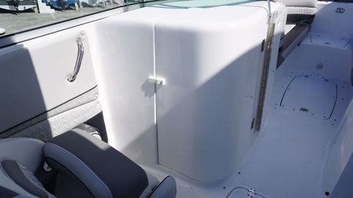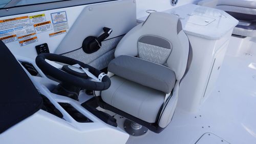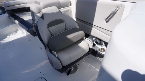 With its spacious layout, intelligent design, and attention to detail, this boat is a floating sanctuary that brings together the thrill of a performance hull with the ease and comfort of a luxury cruiser. Every element—from the expansive bow seating and entertainment-ready cockpit to the extended swim platform and fully equipped head compartment, is built to enhance your lifestyle on the water.