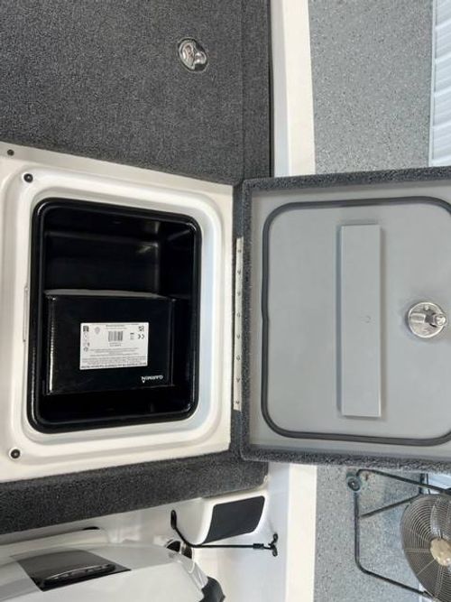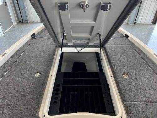 - Center storage compartment with over 19 cubic feet of space and a bi-level tackle organizer