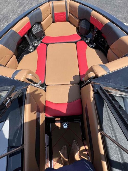From the helm seat, the driver can enjoy the next-level Malibu Command Center. With two high-visibility touch screens that make it easier than ever to find one-touch surf or wake settings as well as features like wireless charging, your captain is sure to be happy.