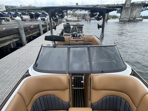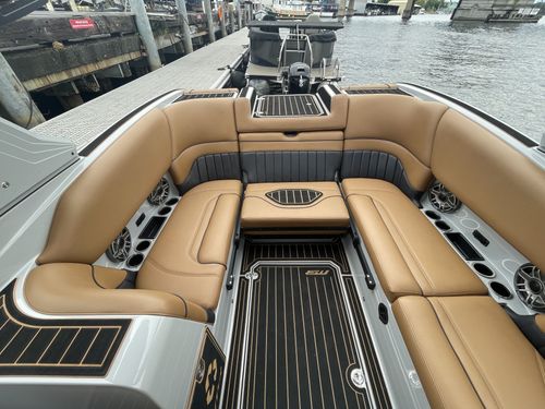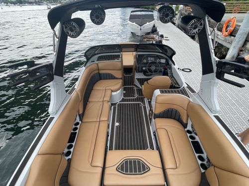 The 2024 MB B52-25 Alpha is a premium 25-foot wake boat built for riders who demand top-tier performance, style, and technology—and with only 61 engine hours, it’s practically new. Featuring over 4,000 lbs of factory ballast and MB’s Surf System, the B52 25 Alpha delivers powerful, clean, and fully customizable waves for surfing and wakeboarding. Powered by a high-output engine, it offers smooth, responsive handling and plenty of torque, even when fully loaded. Inside, the spacious layout boasts premium upholstery, a cutting-edge touchscreen helm, and ample storage throughout. With aggressive styling, modern amenities, and low hours, this 2024 B52 25 Alpha is ready for endless days of on-water adventure.