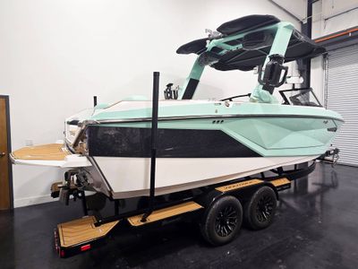 This 2024 Nautique G23 with only 26 hours is a fully loaded luxury wake boat built to deliver unmatched performance and comfort on the water. Equipped with the premium telescoping Flight Control Tower, Nautique Integrated Steering Assist, JL Audio Elite sound system, heated seating, underwater lighting, walk-through air dam, removable seating, and striking Jet Black Metal flake accents, this G23 blends cutting-edge technology with bold style. Additional upgrades include enhanced lighting, upgraded steering wheel, custom tower colors, premium interior finishes, and full mooring cover — making this boat turnkey and ready for unforgettable days on the lake.