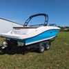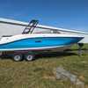 Features include the water sports tower with bimini, dual batteries with tray and switch, FBC digital dash with Smartcraft connect 9", Dune colored upholstery and brown flooring, and a tandem trailer.