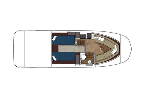 - Cockpit social area with opposing seating & storage