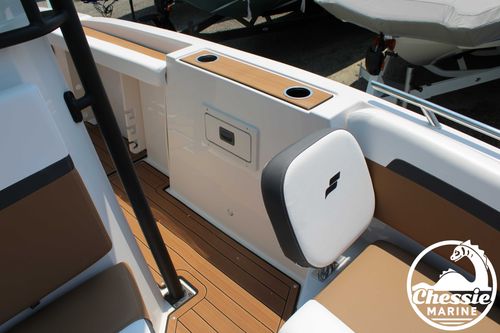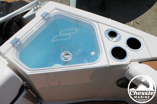 Fishing Package Includes: Two Fishing Seats, Trolling Motor Plug/Outlet, Rod Storage Clips, Bow Livewell, Stern Livewell