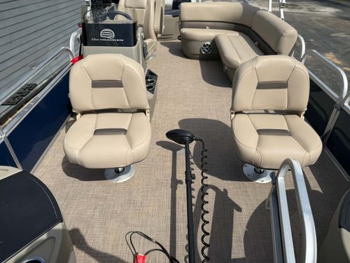 This pontoon boat is highly equipped for serious anglers. One of the standout extras is a wireless trolling motor that provides you with precise control and maneuvering while maintaining quiet operations to not disturb the fish. Additionally, this boat is fitted with a Lowrance Hook GPS Fish Finder. This high-tech fish finder utilizes advanced sonar technology to pinpoint the precise locations of fish, enabling navigation in all water conditions, improving your fishing success rate and overall experience.