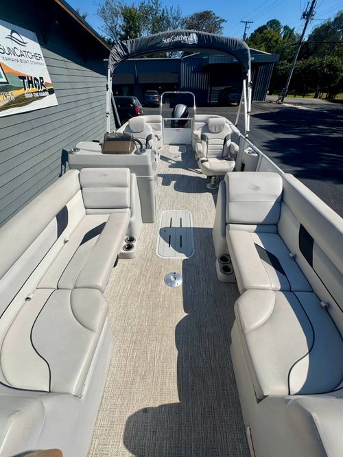Presenting you the epitome of excellence in aquatic vessels, a modern, top-tier triple pontoon boat expertly engineered and designed not just to float, but to glide majestically across the water. This unrivaled marvel of naval engineering is luxuriously powered by a state-of-the-art Yamaha 175 SHO motor.