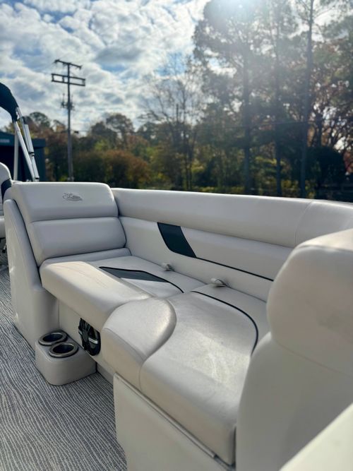 Presenting you the epitome of excellence in aquatic vessels, a modern, top-tier triple pontoon boat expertly engineered and designed not just to float, but to glide majestically across the water. This unrivaled marvel of naval engineering is luxuriously powered by a state-of-the-art Yamaha 175 SHO motor.