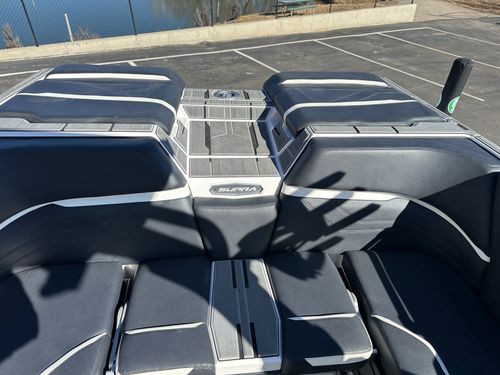 The 2024 SUPRA SE 550 is the epitome of luxury. Every corner of this boat showcases indulgence and comfort. It boasts a spacious interior, luxurious seats, and offers seating for up to 18 people. With high-end finishing touches and stylish ambient lighting included, your boating experience is set to take on a new level of comfort and aesthetics.