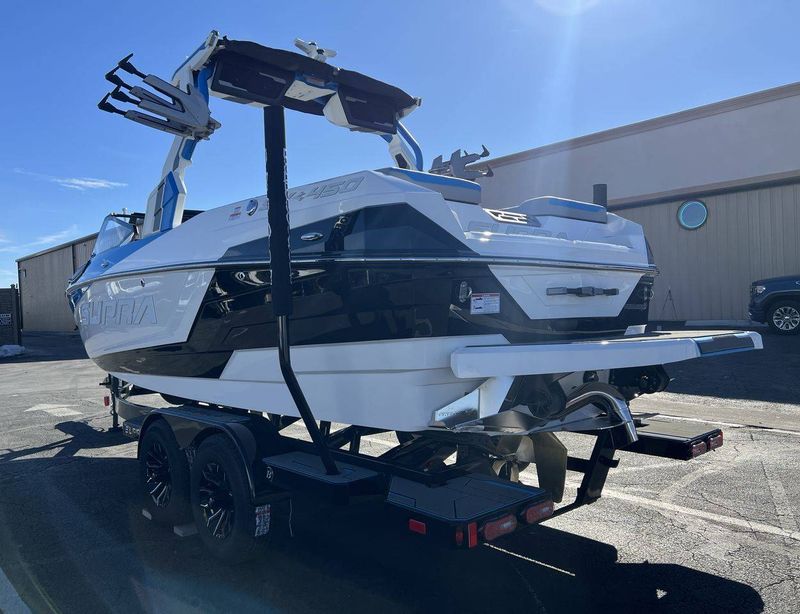 Your boating experience is further enhanced with the 2024 SUPRA SE 550's advanced technological features. These include the patented AutoWake® system - a feature that creates a custom wake perfect for wakeboarding or wakesurfing. Additionally, a top-tier sound system is also included to ensure an exhilarating auditory experience throughout your journey.
