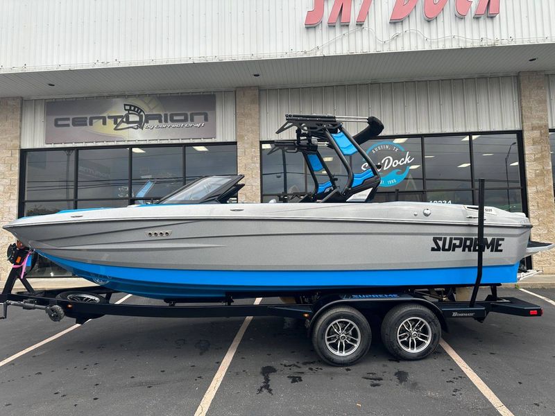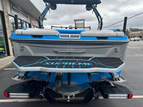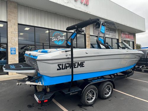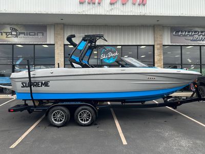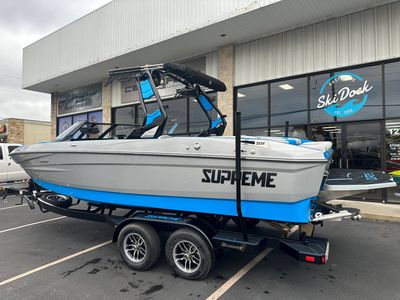 Factory Fresh! This Supreme S220 Is well equipped and ready to SURF! Features the PCM 6.0L 409, F Series Tower w/ Sewlong Bimini Top. Supreme Champ Audio System by Wetsounds w/ 2 REV10 Tower Speakers, 8" Interior Speakers, & 12" Subwoofer, Supreme Quick Surf System w/ Supreme Fill Ballast & Plug n' Play Additional Ballast Bags, Ski Pylon, Underwater Lights, Wind Dam, PTM Edge Hi Biz Mirror, 6 pull out stainless cleats, Cover & Trailer Included