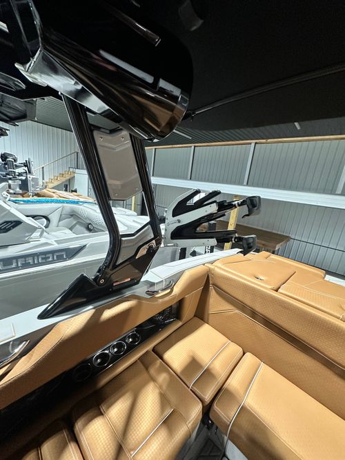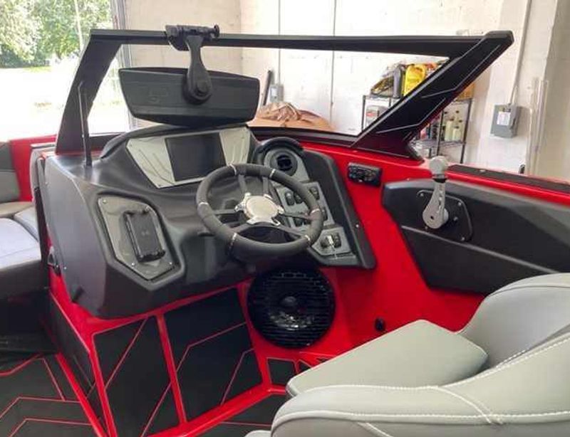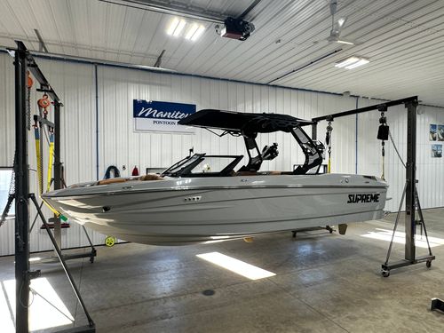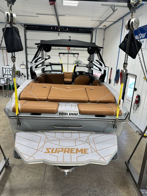 Supreme S220 Standard Features· Engine intake water strainer· Engine flush kit with remote mount· Depth Finder· OmniTouch 7” touch screen with ICE control· One smooth trac fin· Bow ballast hard tank· SupremeFill Pumped Ballast· Rear view mirror· Zero off Pro GPS Cruise Control· Boat Mate Tandem Axle Trailer with matching gator step, large steps and swing tongue