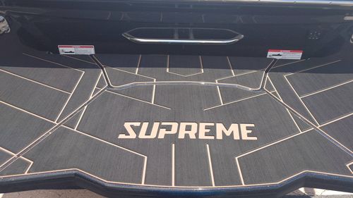 Ride in style this summer on the Supreme S220! This Supreme S220 Is well equipped and ready to SURF! Features the PCM 6.0L 409, F Series Tower w/ Sewlong Bimini Top & Bombshell Board Racks. Supreme Champ Audio System by Wetsounds w/ 2 REV10 Tower Speakers, 8" Interior Speakers, & 12" Subwoofer, Supreme Quick Surf System w/ Supreme Fill Ballast & Plug n' Play Additional Ballast Bags, Ski Pylon, Underwater Lights, Wind Dam, PTM Edge Hi Viz Mirror, 6 pull out stainless cleats, Cover & Trailer Included