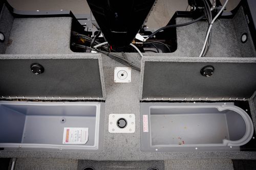 Fishing Features• Four pedestal fishing seats (move anywhere on deck) • 19-gal bow aerated livewell • 29-gal aft aerated livewell w/ recirc • Oversized in-floor rod locker (fits up to 8' rods) • Port & starboard rod lockers • Front & rear casting decks • Integrated tackle storage • Multiple dry storage compartments