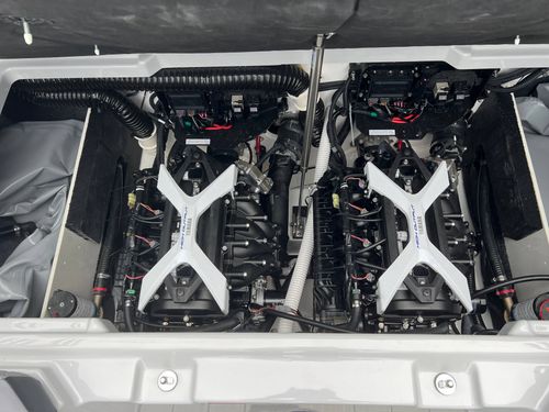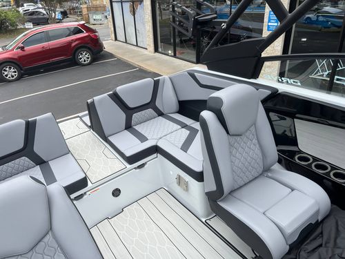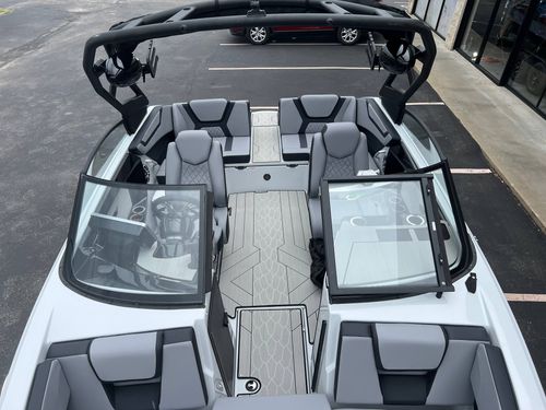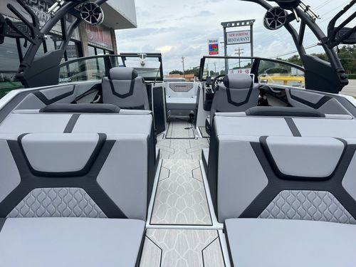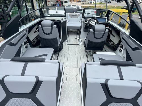 This 222XD is loaded! including an all-new tower with integrated speakers and board racks. For 2024, models include a wireless phone charger at the helm. Captains will appreciate the new right-justified Simrad multifunction display. It gives better visibility for the driver, is easier to read in this location, and provides easy access to the intuitive Connext system for monitoring and controlling onboard systems, including the surf system. The wave is long and forgiving—perfect for beginners—but still with a lip as you ride up the top, so feel free to enjoy your foil or longboard as well. It’s fun for riders of all skill levels. Yamaha’s 222XD proved agile with a comfortable ride. It’s great for wakesurfers seeking minimal maintenance, affordability, a wide-open layout, and the draft and dockside maneuverability of a jet.