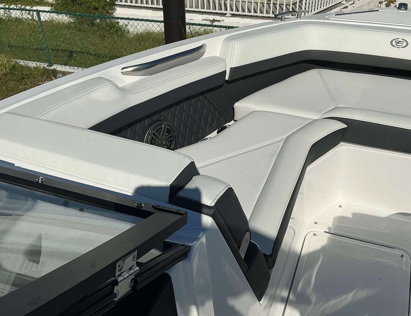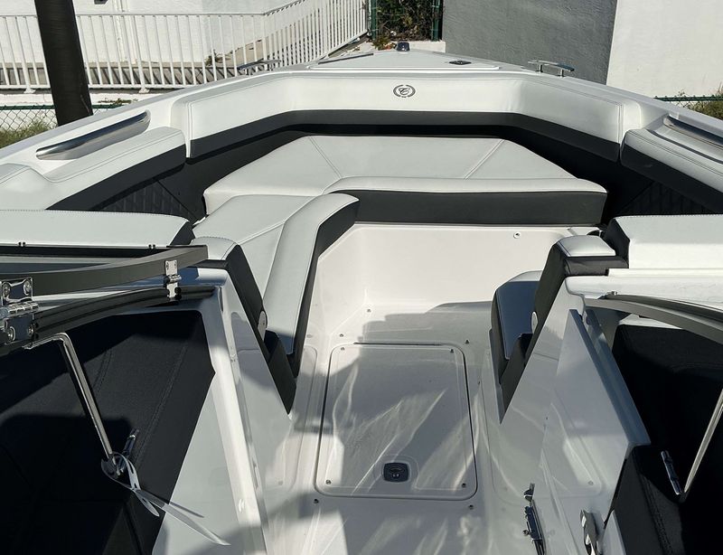 This R4 is built for both relaxation and adventure. The aft-facing rumble seat offers the perfect spot to lounge by the water’s edge, while the premium Sea Grass floor covering adds a refined touch underfoot. Stay shaded and stylish with the premium Bimini, and enjoy easy anchoring with the windlass all-chain anchor system.