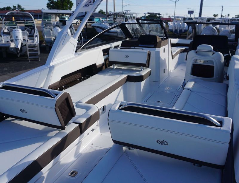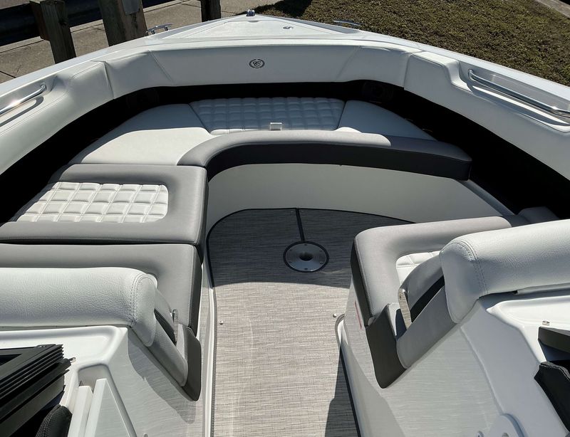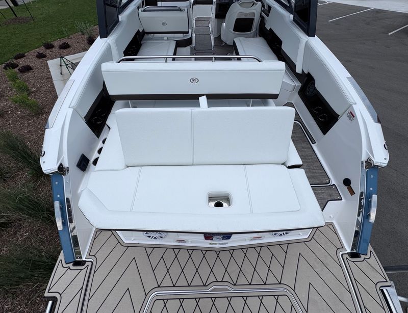 From the moment you step aboard, you’ll notice the attention to detail that defines Cobalt. The Navy and White classic exterior turns heads at the dock, while the Summit and Cocoa interior wraps you in upscale comfort. Every stitch, surface, and curve reflects the brand’s legendary commitment to excellence.