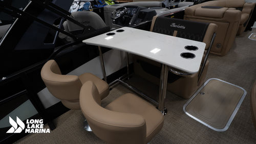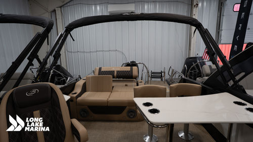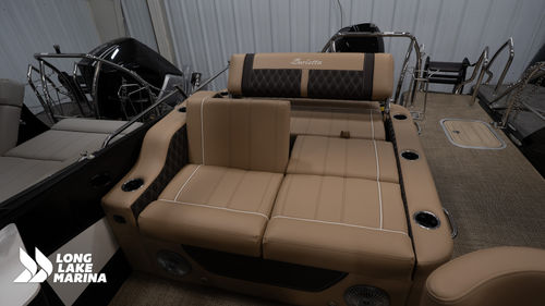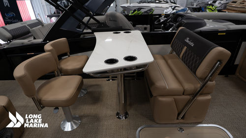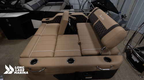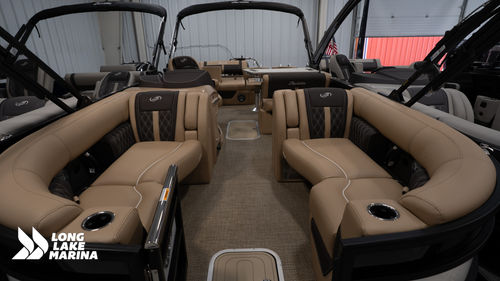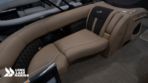The pinnacle of luxury pontoons, the 25’ Lusso 25UE pairs Barletta’s premium craftsmanship with powerful performance from a Mercury 300L Verado V8 engine. The “U” lounge floorplan creates an inviting social space with plush wraparound seating at the stern, while the forward entertainment layout maximizes versatility and comfort for every outing. High-end upholstery, refined finishes, and Barletta’s signature smooth, quiet ride ensure that time on the water feels as good as it looks. With its combination of elegant design, cutting-edge technology, and dependable Mercury power, the Lusso 25UE is built for those who expect nothing less than the best.