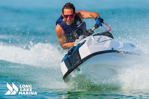 Once the exclusive domain of racers, the Yamaha SuperJet is now redefining the stand-up riding experience for a new generation. Featuring a powerful 1,049cc, three-cylinder, four-stroke engine, this compact and lightweight watercraft delivers exhilarating acceleration making it the perfect choice for performance enthusiasts. The SuperJet is designed for ultimate customization and comes equipped with competition handlebars and a three-position adjustable handlepole that enhances control and comfort. With customizable settings at 16 or 19 degrees, riders can enjoy improved static and dynamic stability. Its 5-gallon fuel tank and easy-to-read fuel level meter ensure hassle-free monitoring and extended ride times. Weighing just 142 pounds and measuring 8.8 inches shorter than the competition, the SuperJet offers unmatched agility and precision. Additionally, with a spacious padded foot tray and an integrated reboarding holder, getting back on board is a breeze. Elevate your riding game with the Yamaha SuperJet and experience the thrill of true performance with us at Long Lake Marina!