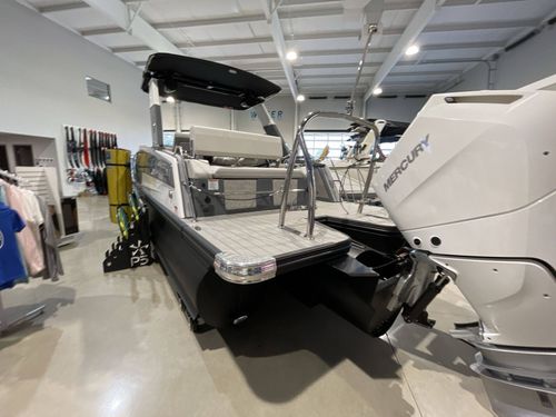 MERCURY 400 XL VERADO COLD FUSION WHITE (M): Our boat features a high-performance and ultra-efficient Mercury 400 XL Verado Outboard engine painted in a stunning cold fusion white, providing exceptional power and reliability.