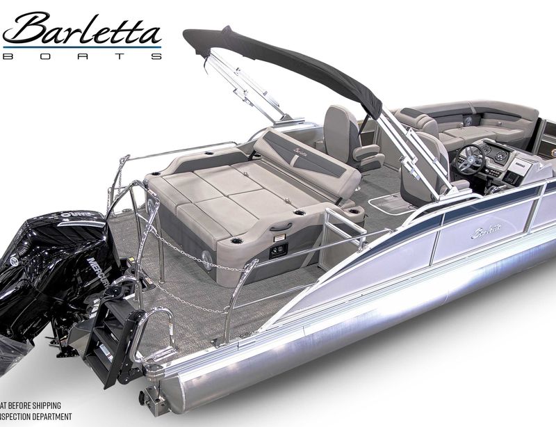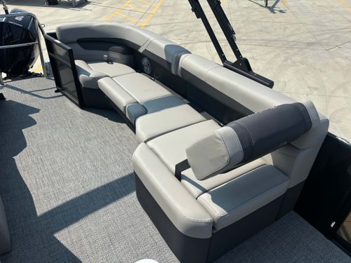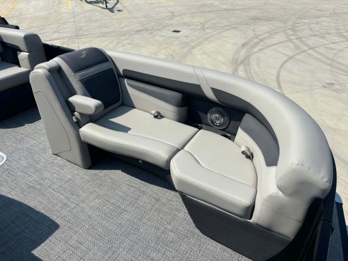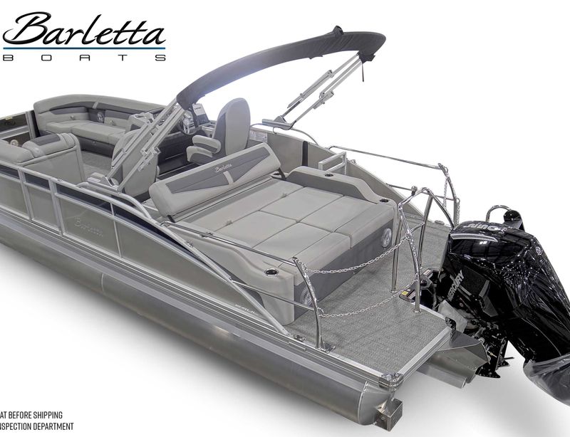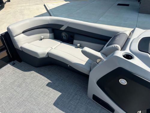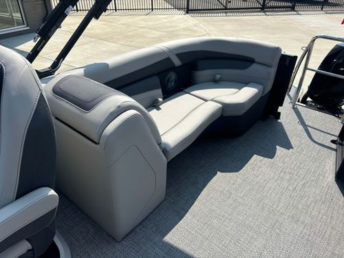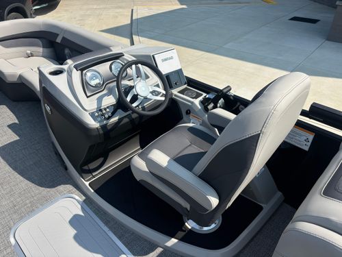 •High back Reclining Helm Seat with Swivel and Slide•Wireless Charging Station•25” Diameter Tubes•Integrated Pet Food/Water Dishes,•Raised Helm Platform w/Marine Mat•Lowrance Hook 5•V.I.P. Technology (Vibration Isolation Pad)•Bow & Port Gate with Doggie-Dock View•Power Bimini Top w/ Boot,•Snapless Playpen Cover