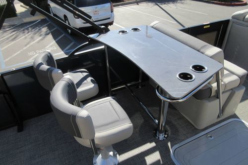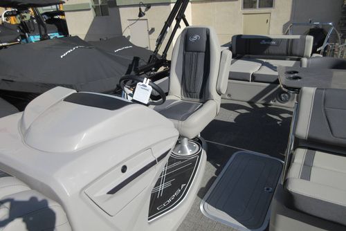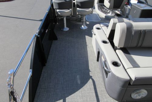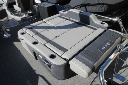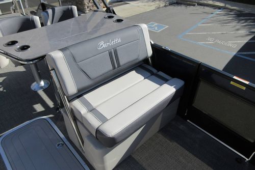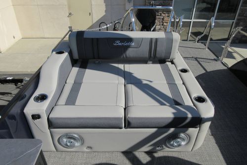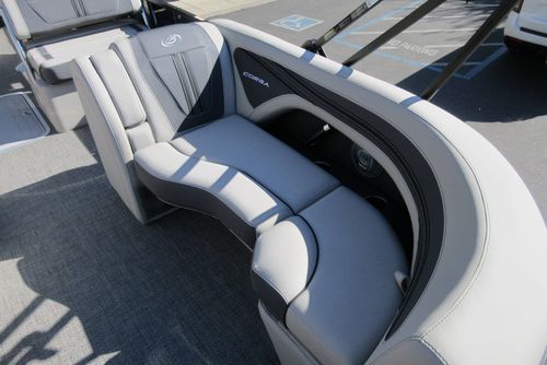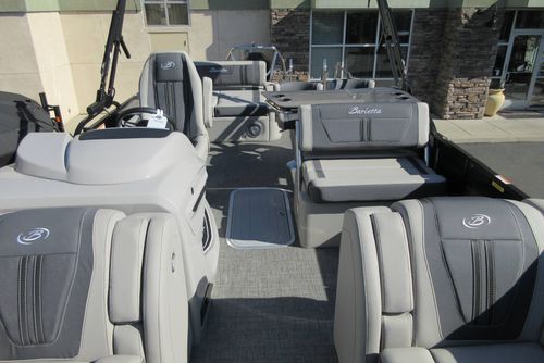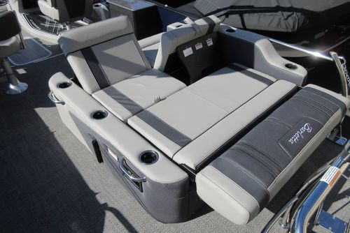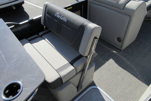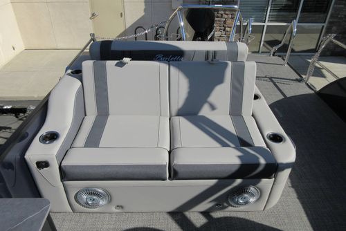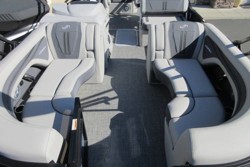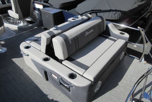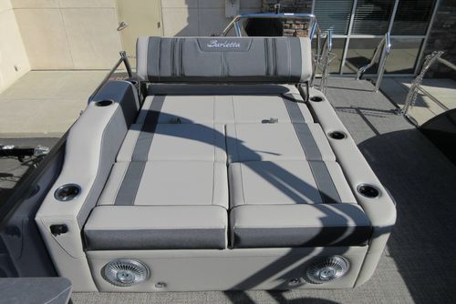 Built for those who want everything that makes Barletta great, with a sporty, aggressive stance. Sleek exterior lines with a muscle-car feel, chrome badging, the best helm in its class, and interior furniture featuring three interior accents to add the perfect pop of color, creates an upgraded experience at an astonishing price point. You’ll be the leader of the pack no matter what body of water you call home. The highlight of the Ultra-Entertainer floorplan is the versatile high-top table accompanied by two upholstered swivel stools with additional multi-function bench seating perfect for hosting family and friends of all ages. Moving to the stern of the boat you will find the one-of-a-kind Ultra-Lounge featuring 5 different seating positions. To round-off this floorplan, you will find the standard chaise-lounge seating in the bow designed for comforting lounging and extra seating.