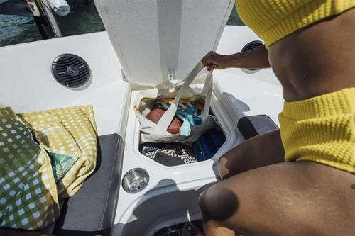 - Large Lockable Port-Side Changing Room and Storage Compartment