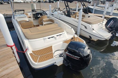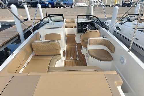 The largest model in our bowrider family, the VR6 is also all about space and unparalleled roominess. It combines Bayliner category-leading BeamForward design and our signature AftAdvantage concept which increases dry seating in the self-draining cockpit by adding the swim platform at the end of the running surface. This boat maximizes space and value like never before regardless of whether you choose outboard or sterndrive power. You will also find pleasant surprises like a lockable enclosed changing room (head optional) and aft-facing companion observer seat that is ideal for water sports and with the addition of a filler cushion creates a comfortable U-lounge that turns the whole aft section into an inviting gathering area.