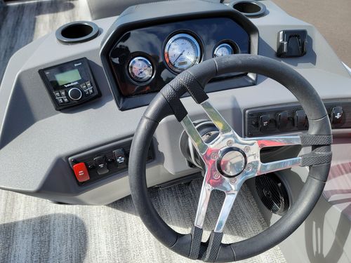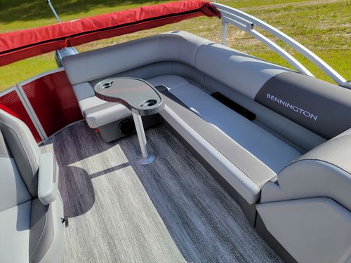 2025 Bennington 20SL – This 20′ pontoon is powered by a 50hp Yamaha outboard, delivering smooth, efficient performance for relaxed lake cruising, sandbar stops, or sunset floats. The layout includes a reclining captain’s chair, L-bench seating, and a stowable table for easy entertaining or laid-back comfort. A quick-release 10′ bimini, Rockford Fosgate audio, stainless cleats, and a deep-step stern boarding ladder enhance convenience and usability. Finished with Bennington’s signature soft-touch upholstery and refined craftsmanship, the 20SL offers dependable performance and everyday comfort in a versatile, easy-to-handle package. Call or visit us today to make it yours!
