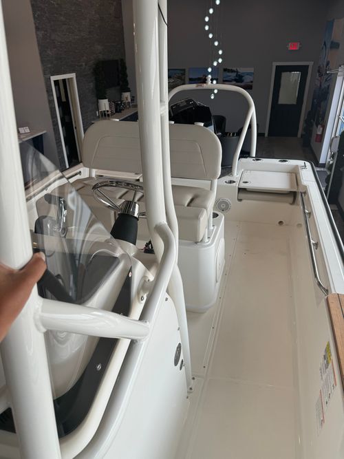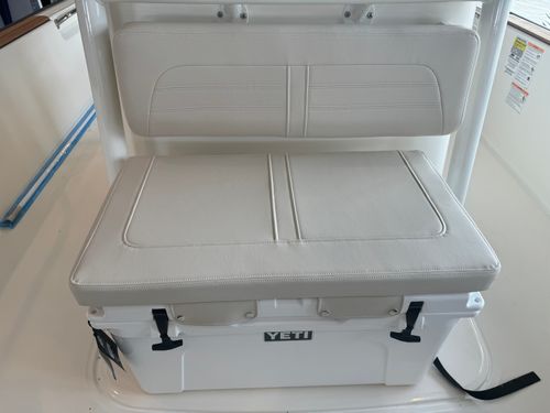 Deluxe Cockpit Seating Package (Deluxe Leaning Post, Flip up Bolsters, Rod Holders & Cupholders, Livewell (30-gallon), Raw water washdown), 94 Qt. Cooler seat with Cushion and Backrest & Console mounted rod holders)