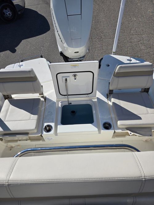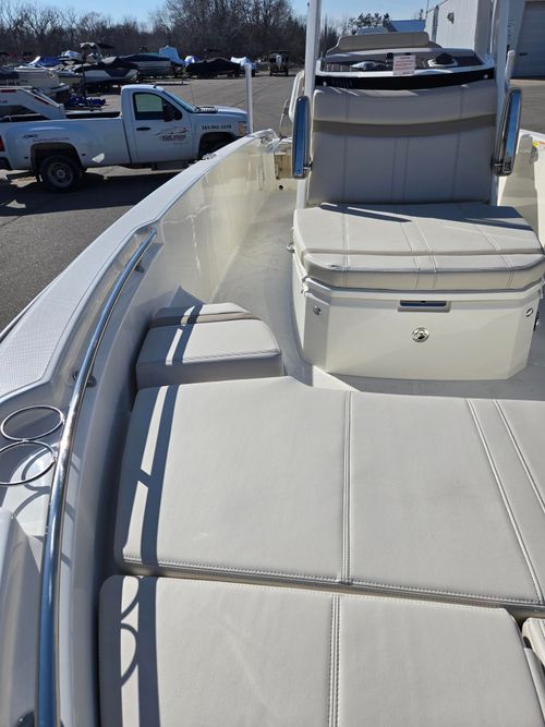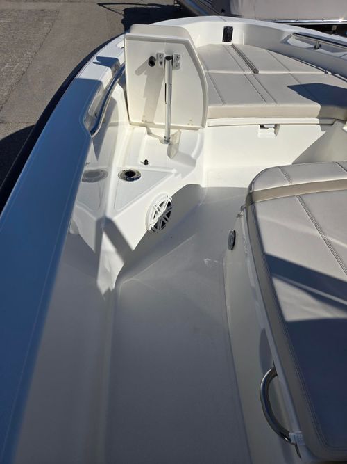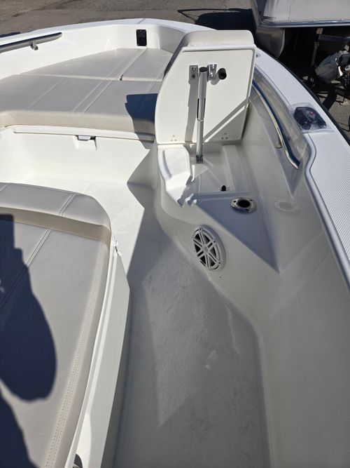 - FIBERGLASS HARDTOP (dome light (red and white), lifejacket storage, Watersports tow point & rod holders (4))