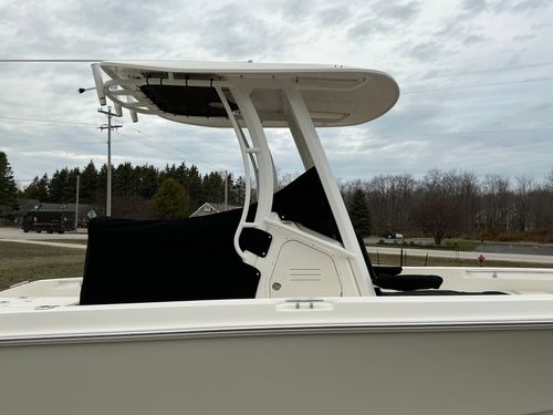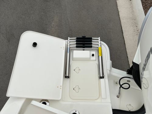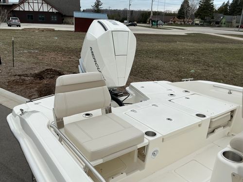 The 2025 Boston Whaler 250 Dauntless is a 25‑ft center console bay boat that blends fishing prowess with watersports and cruising comfort. With an 8’6″ beam, 90-gal fuel tank, and capacity for 10 people, it’s ideal for a family day on Lake Michigan out of Door County. Anglers will appreciate the 35-gal stern live well, bow fish box, countless rod holders, and spacious tackle storage. The inviting bow lounge, fold-up stern seats, and swim platform with an angled ladder make it perfect for lounging at the canal in Sturgeon Bay or anchoring off Chambers Island. Powered by a 400HP Mercury outboard and unsinkably safe, the Dauntless delivers smooth, offshore-capable performance, with a hull that planes quickly yet draws just 15″, perfect for shallow bays.
