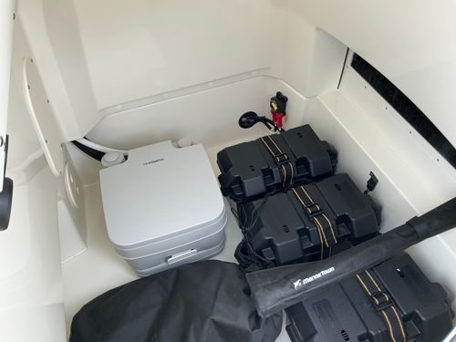 - PLUMBING PACKAGE (Freshwater shower with 12-gallon tank & Portable head with deck pump-out)