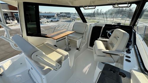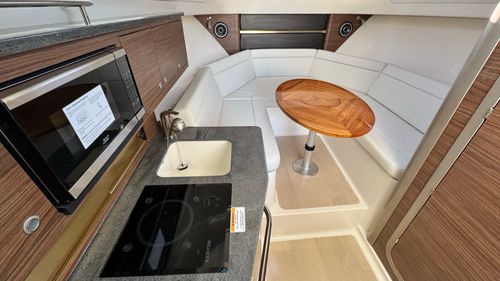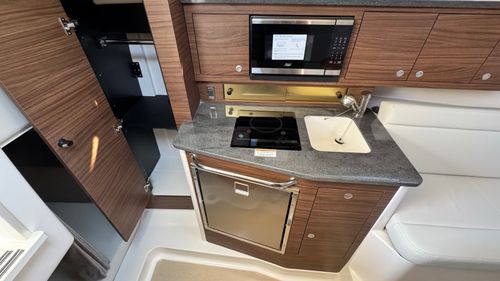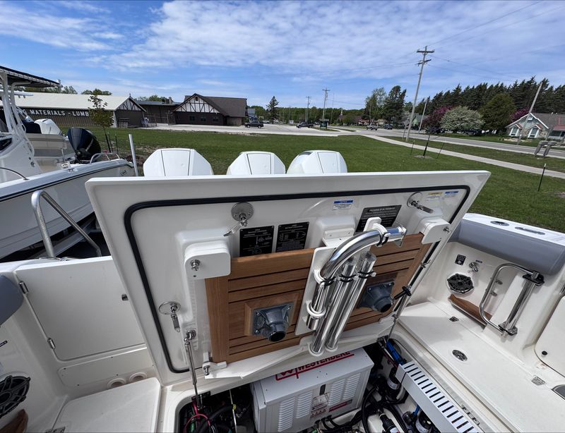 If you’re looking for the perfect boat for exploring all of Door County and all the Great Lakes has to offer, the 325 Conquest might be your perfect boat.  Days with long runs offshore, weekend trips across the lake, or just anchoring off Chambers Island, this Conquest can conquer any mission. With a full galley below, or the cockpit prep station it’s perfect for days anchored and hosting friends. If you’re the sporty type, it also has a large live well and two fish boxes in the cockpit flanked by a healthy supply of rod holders. For the members of your crew who enjoy the relaxation of a day out in the sun, the large side decks ensure safe passage onto the expansive bow sun pad. This is a boat that truly has something for everyone.