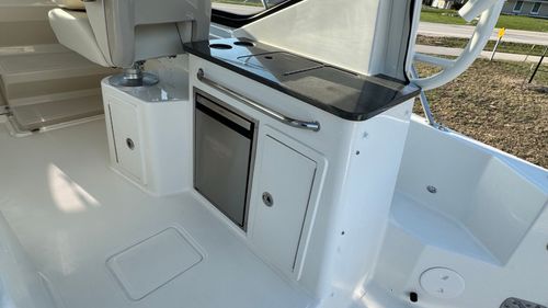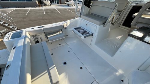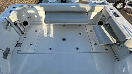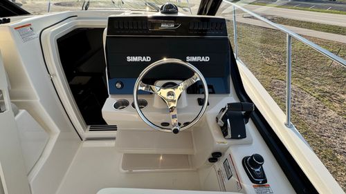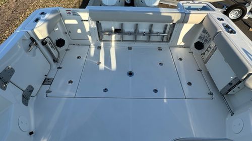 - 325 CONQUEST BASE PACKAGE (325CQT): 300 CXL V8 (DTS) DUAL 4-STROKE MERCURY ENGINES, 300 GALLON INTEGRATED FUEL TANK, STAINLESS STEEL PROPELLER, STEREO SYSTEM - JL Audio MM105-HR stereo with Dash mounted remote volume/mute knob, AM/FM/HD Radio, USB audio, and Sirus XMTM ready, Iphone/Android compatible via integrated Bluetooth 5.0, JL waterproof speakers (6), 10” Subwoofer, and 800W Amplifier. Simrad NSX 12” MFD (GPS, Chart plotter, Fishfinder), Active Imaging 3 in 1 Transom Mount Transducer (CHIRP, SideScan, DownScan) & C-Map® DiscoverTM X Chart Card: North America/Canada. BATTERY TRAYS (4), NAVIGATION LIGHTS, ELECTRIC HORN, AUTOMATIC BILGE PUMPS, FUEL/WATER SRPARATORS, FRESHWATER SYSTEM, SHORE POWER WITH 30 AMP CHARGER & GALVANIC ISOLATOR, LOW PROFILE ANCHOR WINDLASS WITH RODE & ANCHOR, ELECTRIC TRIM TABS WITH INDICATOR, HYDRAULIC TILT STEERING & VESSEL VIEW MOBLE. ENGINES INSTALLED AND TESTED COLOR: HULL SIDE PAINT (ADDS TWO WEEKS TO THE FINISH DATE) (LATE CHANGES WILL NOT BE ACCEPTED)