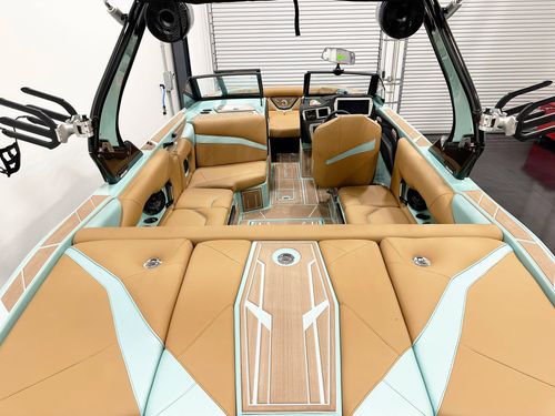 2025 Centurion NV233 CALL OR TEXT 407-425-2628 The Nv233 takes it up a notch from the entry Centurion Nv213, with two more feet of length, room for two more passengers and the exotic sports car look that says high performance even when docked. It comes with up to 5000 pounds of available ballast, more than half of which can be filled in 90 seconds with available RAMFILL2. This isn’t a stripped-down version of a more expensive Centurion or an older design dressed-up new, the Nv233 is designed from the water up to deliver precisely what you need to get the most out of your water sports experience. The Nv233 offers world championship caliber surf, with the ability to propel you to your own best performance. Unique to the Nv Series design is the unobstructed GatorStepped space between the tower and the dash that facilitates easy communication directly with a rider – perfect for coaching. An abundance of built-in quality features means the Nv233 comes with everything you need to get on the water and enjoy a great ride from day one, but that doesn’t mean you can’t option up as well. This 23-foot Centurion leaves nothing to be desired except more time on the water