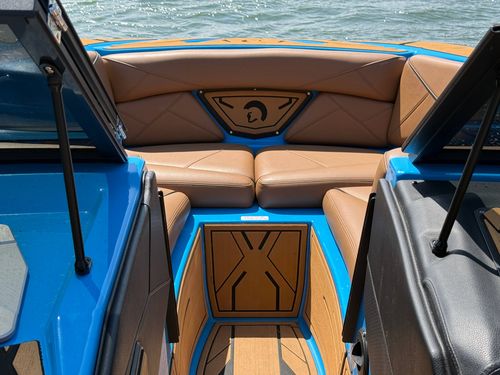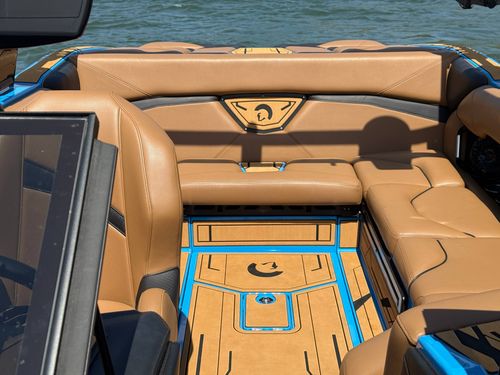 Comfort & Convenience Cool Touch Castano Brown interior | Heated driver seat with 3-outlet heater | Flip-up port stadium seating | Bow filler cushion | HD slide seat with table | Rear camera | Docking lights | 20% window tint | Grizzly 40qt ice chest | Great Lakes cover