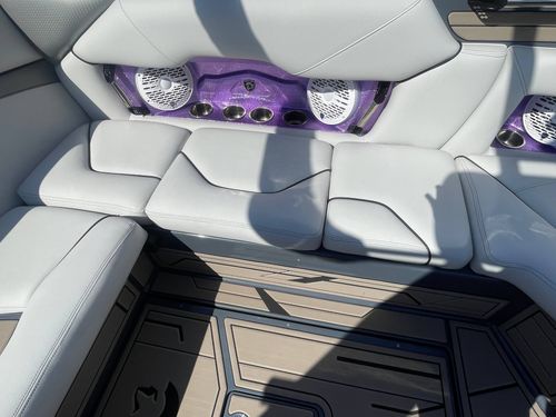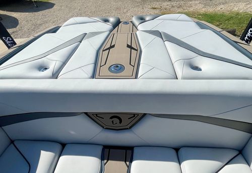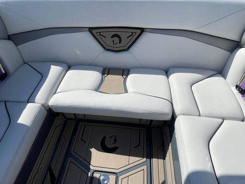 Prioritizing smart space use, the NV233 boasts an ideally located wet locker at the transom, perfect for storing surf ropes, shoes, and other accessories. This specially designed compartment ensures your essentials are readily available and can get as wet as necessary without issue. For further storage, we've incorporated mesh nets above the ballast bags, conveniently stowing life vests, surfboards, and wakeboards, keeping your deck clear and safe.