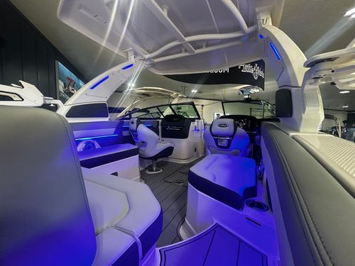 ALL NEW FOR 2025. The Chaparral 26 Surf is the premier Yacht Certified surf boat in the industry. This boat pairs the Malibu Surf Gate with standard trim tabs to make a world class surfing wave. The silicon based interior give this boat the best feel and quality in the industry. Come on down and take a ride today and see why we love this boat!