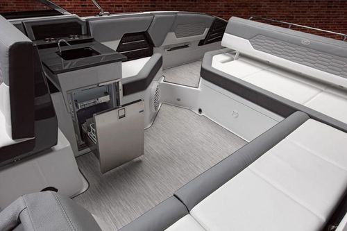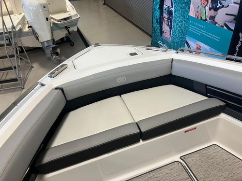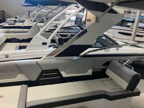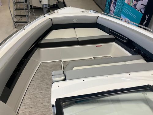 The A29 delivers leading-edge innovations that take the A Series to another level. Experience the handling of this runabout’s rugged, handcrafted construction while enjoying the space, comfort, and style of a premium yacht. All in all, it delivers head-turning style on the water and a truly standout ride. The elegant A29 features a surprising range of amenities—including a dual Garmin Glass Cockpit touchscreen, a spacious day cabin with a portside walk thru, plus the fun and convenient Splash & Stow™ inflatables management system that makes every day on the water memorable.