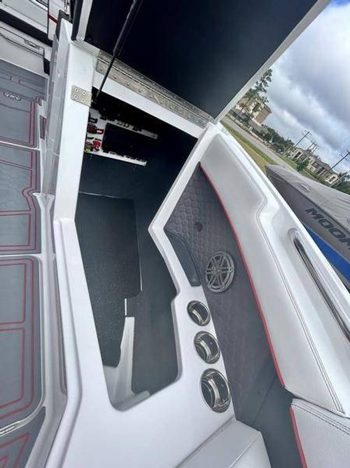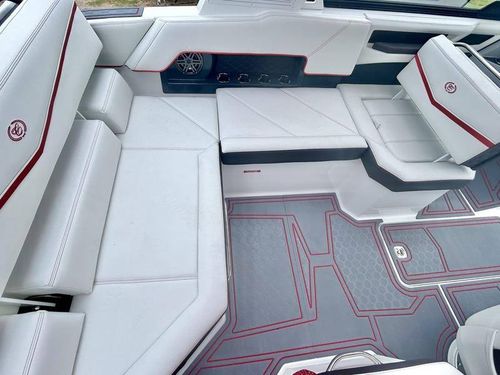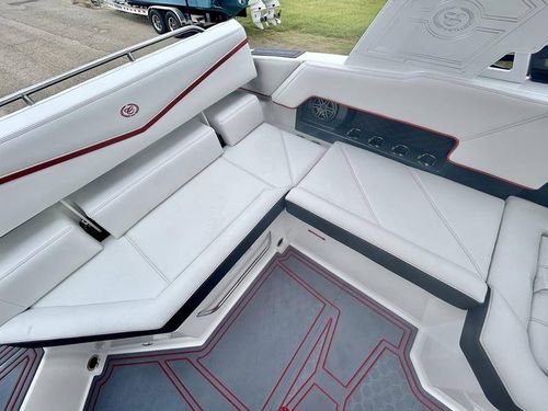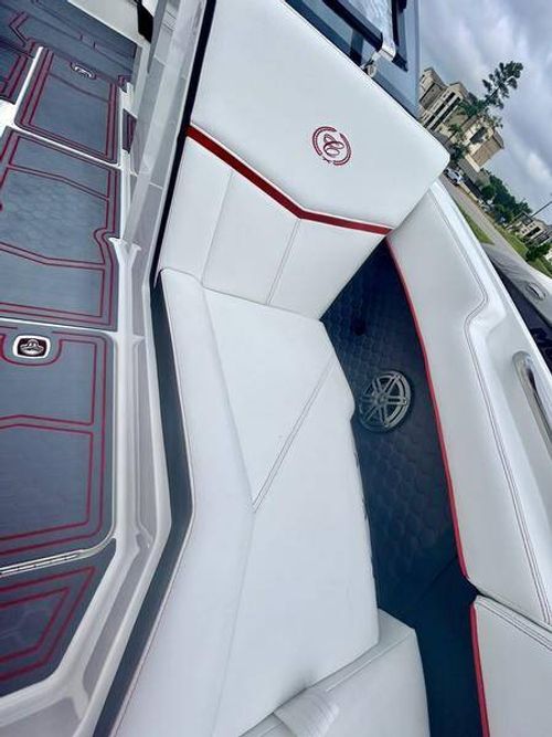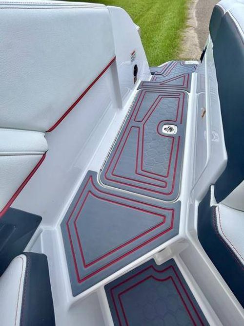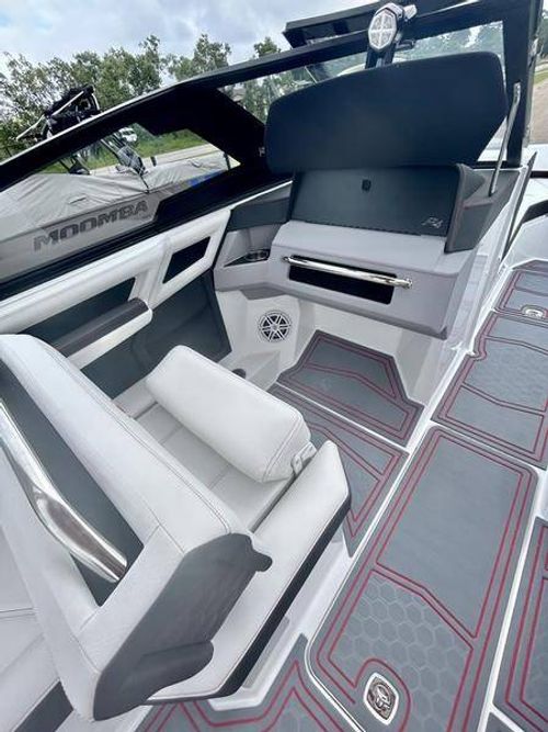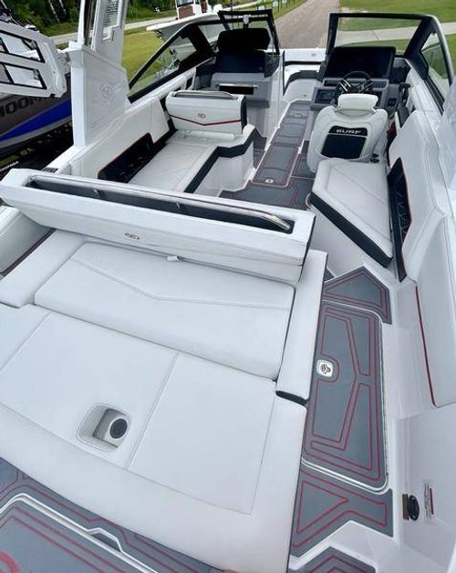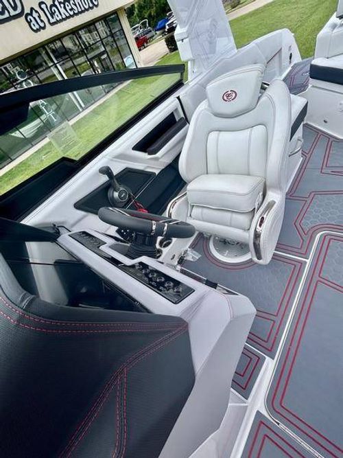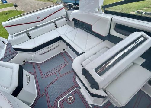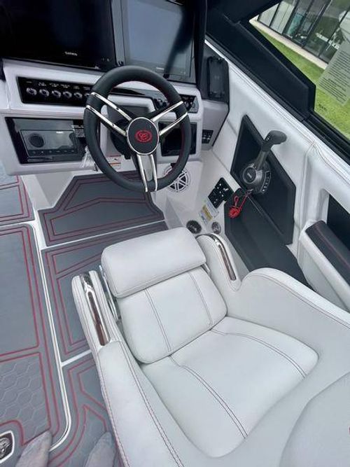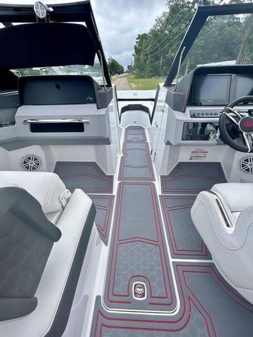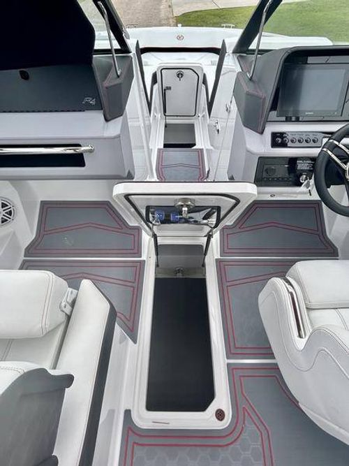 Inside the R4 Surf, discover where state-of-the-art becomes fine art. A family sized sport runabout that incorporates sleek lines, crisp handling from the dual Garmin Glass Cockpit touchscreens, and a range of options, the uniquely refined interior complements its unsurpassed watersports capability.