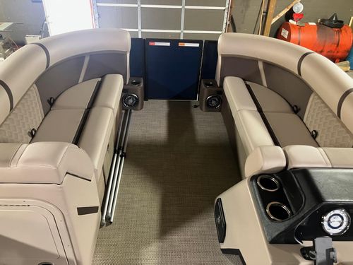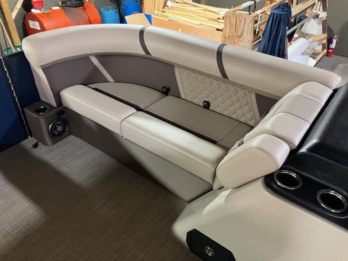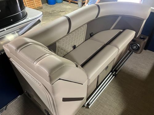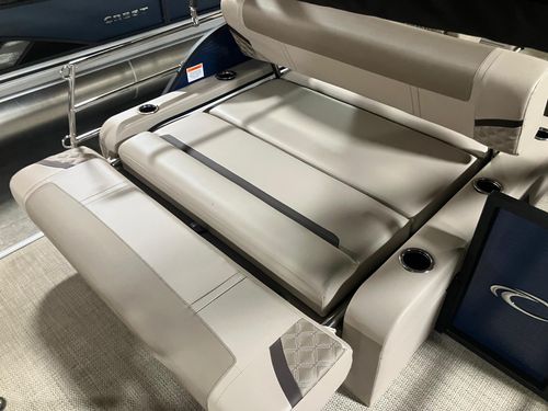 The Crest 220 SLSC Classic LX is a 22-foot pontoon that blends sporty design with versatile comfort, ideal for both laid-back cruising and active days on the water. Its signature swing-back lounge and dual captain’s chairs offer flexible seating, while the helm stand and midship entertainment table enhance usability and flow. Built with oversized aluminum pontoons and premium vinyl flooring, it delivers stability and style. Standard features include a swim ladder, removable oval table, and SIMRAD touchscreen display, all wrapped in Crest’s sleek, modern aesthetic.