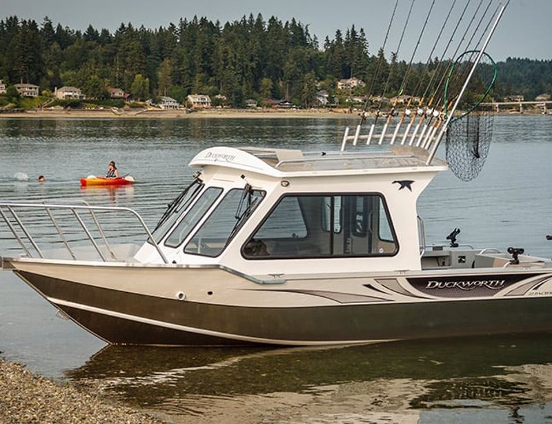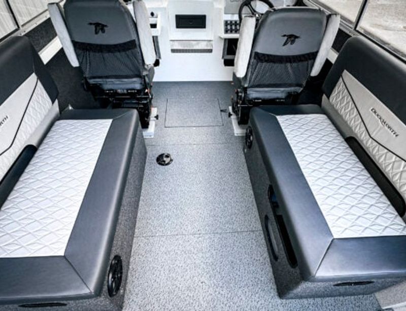 It stands as a testament to Duckworth’s ethos of elegance and comfort. Its reverse chine bottom glides with grace, offering peak fuel economy, while the offshore Bracket™ ingeniously maximizes interior space without compromising seaworthiness. This is the craft designed to keep your fishing adventures delightful, even when the waters turn unruly.