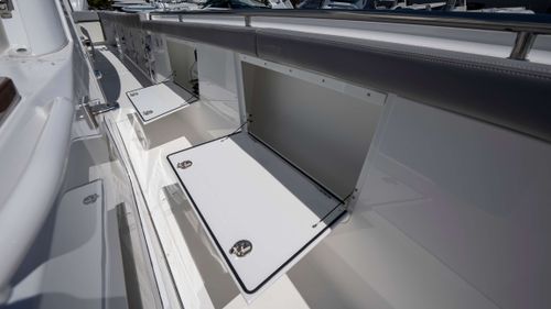 - Teak Accents at fwd lounge, fwd bow seats, and dive doors