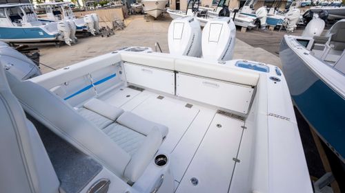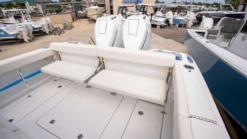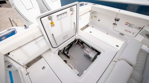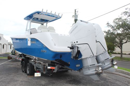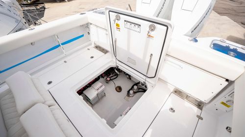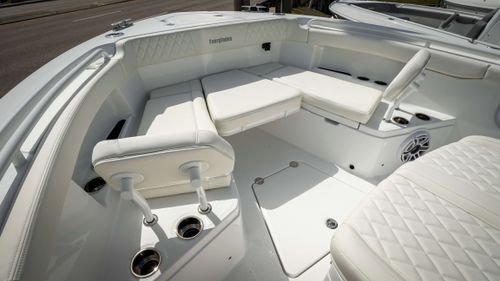 The 2025 Everglades 315 CC is a masterpiece of maritime engineering, seamlessly blending cutting-edge performance with luxurious comfort. Powered by twin 400-hp Mercury V10 engines, it delivers exhilarating speeds up to 56.3 MPH, ensuring you reach your destination with unmatched efficiency and thrill . Its robust construction, featuring Everglades' patented RAMCAP® technology, guarantees an unsinkable, durable platform for all your adventures. Whether you're chasing the horizon or reeling in your catch, the 315 CC offers a smooth, stable ride and an array of premium amenities to enhance every journey. Designed for the discerning mariner, this vessel epitomizes the pinnacle of boating excellence.