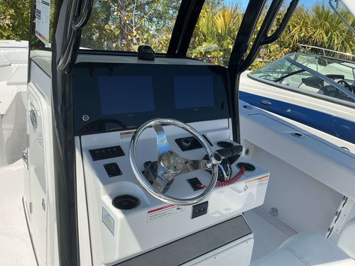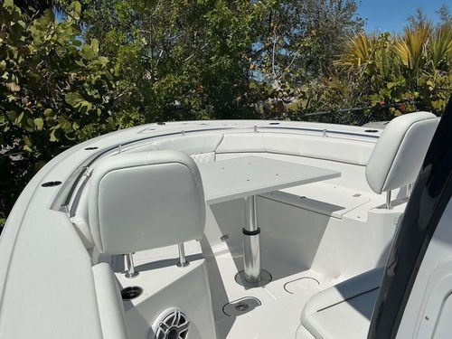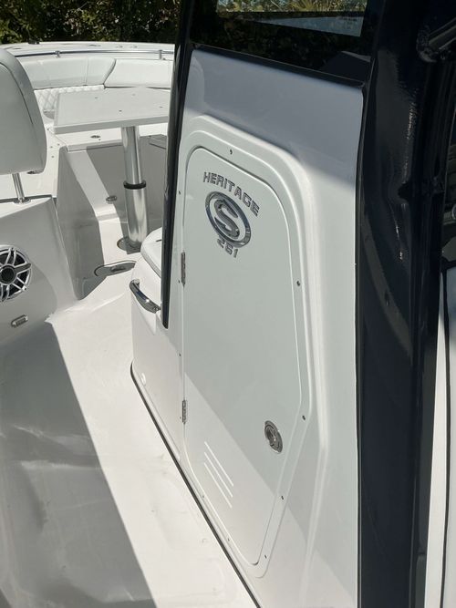 The Heritage 261 defines a new class of family-focused water-centric all-fun boats. Whether you like spending time on the water, in the water or around the water, the all-new Heritage 261 has you covered. The water-centric views in sandbar mode will captivate your heart and is guaranteed to produce some incredible family memories for years to come. The layout includes deep U-Shaped seating at the bow with an electronically actuated table, edge-to-edge seating at the back for up to 5, dual side entry doors that open 180-degrees, dual transom walkthrough doors that flip to offer aft-facing seating, sandbar cooler accessible from outside the boat, dual boarding ladders, swiveling captain's chairs and so much more. Walking through the features on this boat will have you thinking "they thought of everything."